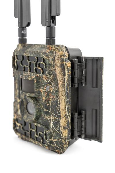 Fotopast OXE Panther 4G je v maskovaném provedení, které bylo zvoleno tak, aby fotopast co nejlépe zapadla do českých lesů a zahrad. Fotopast je v robustním provedení, je tak odolná vůči vandalům. Nepřehlédnutelné jsou dvě antény, které umožňují fotopasti odesílat pořízené snímky na Vaše zařízení přes nejrychlejší dostupnou síť 4G.
