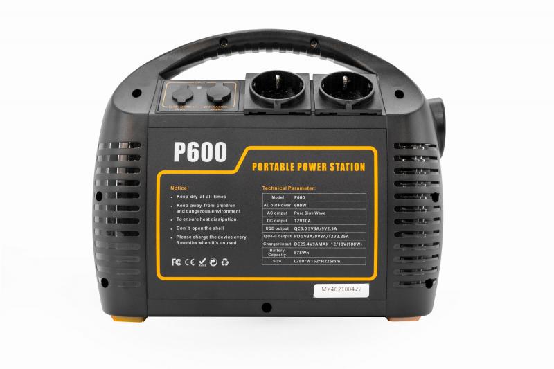 OXE Powerstation P600 je venkovní, přenosná, multifunkční, dobíjecí elektrocentrála 600W/578Wh. Uvnitř powerstation se nachází vysokokapacitní Lithium-ion baterie s vysokým výkonem pro dlouhodobý provoz. Nízká hmotnost (5,9 kg) předurčuje bateriový generátor pro použití na cestách, při campingu, na zahradě a kdekoliv jinde, kde nejste v dosahu elektrické sítě. Díky různým typům výstupů lze elektrocentrálou dobíjet většinu elektronických zařízení. Elektrocentrálu lze dobít pomocí síťového adaptéru, autonabíječkou nebo solárním panelem. Pro snadné přemístění slouží úchyt v horní části nabíjecí stanice. Pro bezpečné a komfortní přemístění je k elektrocentrála OXE P600 zdarma brašna.