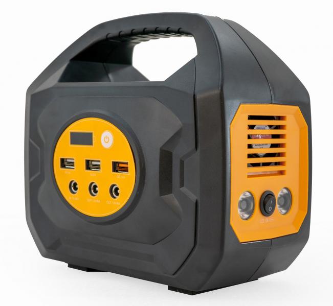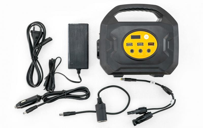 Na čele nabíjecí stanice je umístěn hlavní panel, na kterém je displej s indikací stavu nabití baterie. Stav baterie je znázorněn číslovkou (při nabití powerstation nižším, než je 10 % dojde k upozornění blikáním). Vlevo od číslovky je indikátor zapnutí nabíjecí stanice. Když je nabíjení zapnuté, indikátor je zelený (při vypnutí je indikátor zhasnutý). Když je zbývající výkon nižší než 10 %, indikátor se změní na červenou barvu. Pokud nedochází k žádnému nabíjení, automaticky dojde k přepnutí do režimu spánku (při zahájení nabíjení dojde k opětovnému automatickému zapnutí). Pod displejem jsou umístěny tři výstupní porty USB (5V/1A, 5V/2A, QC 3.0). USB porty a displej se ovládají pomocí tlačítka vedle displeje. Dále je na hlavním panelu jeden vstupní port DC5521 13-30V/4A (umožňuje dobíjet elektrocentrálu pomocí síťového adaptéru, autonabíječkou nebo solárním panelem), a dva výstupní porty DC5525 12V/8A. Boční panel obsahuje výstupní zásuvku AC 220V/50Hz (nebo AC 110V/60Hz) a spínač pro její zapnutí / vypnutí. Na druhém bočním panelu se nachází ventilátor, pod nímž jsou umístěny dvě výkonné LED diody pro přísvit, které se zapínají (vypínají) samostatným spínačem umístěným mezi nimi.