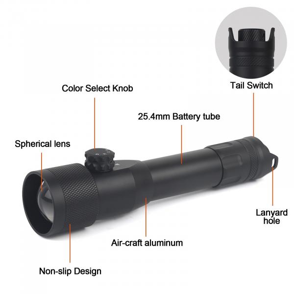 Taktická policejní svítilna umožňuje přepínat mezi 4 různými režimy – bílý, zelený, červený a IR 940 nm – lidskému oku neviditelný. V režimu bílého přísvitu je maximální dosvit až 650 metrů, světelný tok 650 lm a intenzita osvětlení 4 500 lux. Pohodlné přepínání mezi režimy umožňuje otočné kolečko na těle svítilny. Díky stmívači, který se nachází na zadní straně svítilny, lze jeho pootočením nastavit intenzitu osvětlení v rozsahu 1% - 100%. Otočná hlava svítilny umožňuje i širokou variabilitu v nastavení šířky světelného paprsku. S výkonnou baterií 18650 je zajištěno až 2,5 hodiny nepřetržitého provozu na maximální výkon a až 200 hodin na nejnižší výkon, což činí tuto svítilnu ideální volbou pro náročné situace.